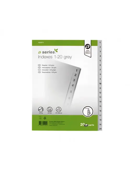 Stock Limitado ASERIES INDICE 1-20 POLIPROPILENO A4 GRIS – AS0974