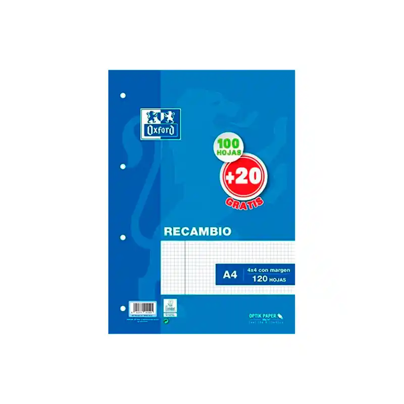 Stock Limitado Hojas de Recambio Oxford A4 90 Grs
