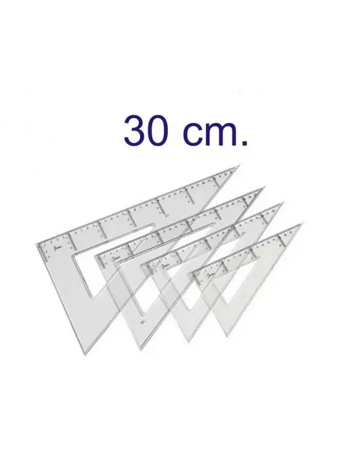 Cartabón escolar. Fabricado en poliestireno, graduación en horizontal. Biselado y con reborde para tinta. 100% Reciclable. Certificadas según norma EN 71.