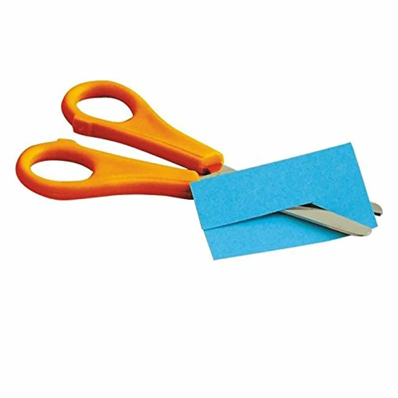 Tijeras escolares de acero inoxidable, empuñadura de plástico y punta roma, 13,5 cm. largo.