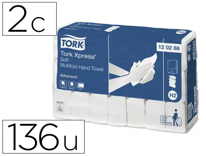 Recambio de toallas secamanos. Entredoblada tamaño grande. Garantía de mayor suavidad y rentabilidad. 2 capas. Medidas del paquete: 212x120x85 mm. Medidas de la hoja: 212×340 mm. Para dispensdador H2. Gramaje: 42 g/m². Paquete de 200 toallitas. Aumenta la capacidad de los dispensadores pequeños con toallas de mano de papel prensadas en un 50%. Estas toallas de papel grandes son superabsorbentes y resistentes a los desgarros, para que los usuarios utilicen menos cantidad. La dispensación individual ayuda a reducirlos residuos y mejorar la higiene, ya que los clientes solo tocan lo que cogen. Las certificaciones de la UE y el FSC demuestran nuestro compromisocon la sostenibilidad.