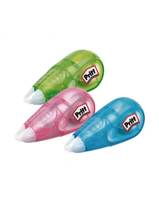 Corrector seco de tamaño mini con cinta de alta calidad. Corrige en los dos sentidos ideal para diestros by zurdos. En tres divertidos colores, rosa, verde y azul. Invisible en fotocopias y faxes.